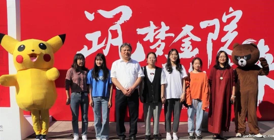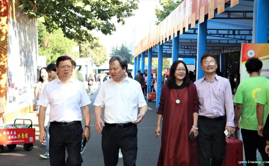 周建松书记、郑亚莉校长面带灿烂笑容,与新生们交谈并合影留念。