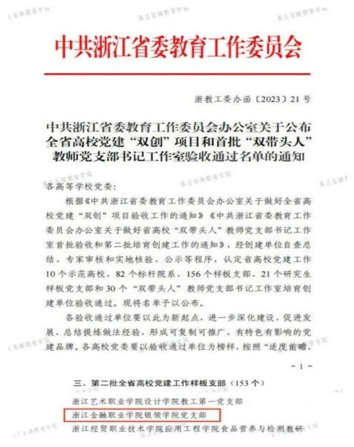三、教科研百花齐放,科教融汇释放新动能。学院深化三教改革、课程思政和有组织科研,通过抓大项目、大抓项目,推进教学科研高质量发展。五年来,获全国优秀教材一等奖1项、国家精品课程2门、国家教学资源库子项目6项、省教学成果二等奖1项、省级精品课程3门、省级精品资源在线开放课程4门,主编“十三五”“十四五”国家规划教材6本、主编浙江省重点建设教材1本、其他银行类教材10余本,出版著作3部,主持教育部人文社科项目3项、省部级以上科研项目10余项、厅局级以上科研项目50余项,获厅级科研成果奖2项,在《国际金融研究》《金融时报》《中国教育报》等核心期刊(报刊)发表论文100余篇,授权国家发明专利2项。