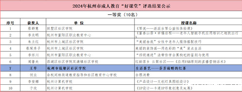 《生活茶艺—芬芳甜醇的红茶》荣获2024年杭州市成人教育“好课堂”评选一等奖