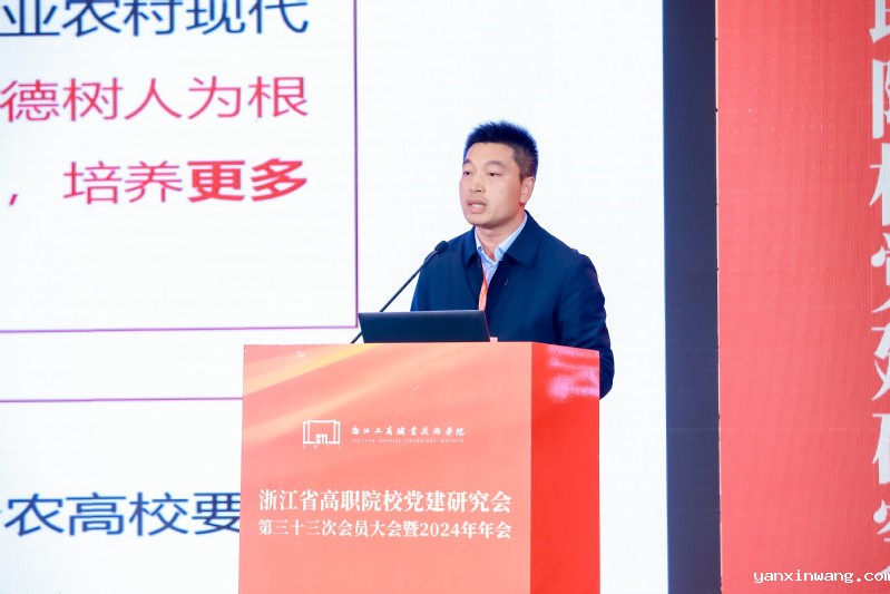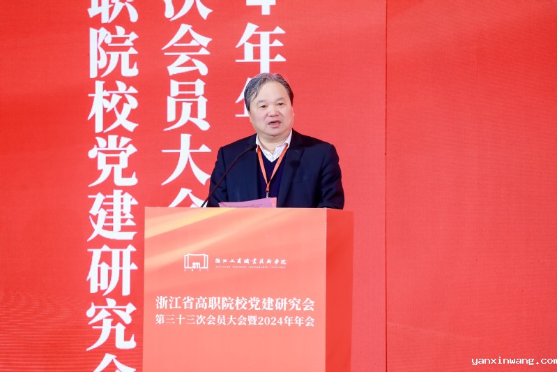 许翰信代表省委教育工委、省教育厅对年会的召开表示热烈祝贺,对省高职院校党建研究会这些年来所做的工作表示由衷敬意。并就高职院校如何做好党建工作,谋准谋实党的建设和事业发展深度融合,为加快建设创新浙江,奋力谱写中国式现代化浙江新篇章提供强大支撑,提出了三点意见。一是坚持党建统领,优化立德树人育人体系。要坚持党的领导,提高政治站位;要把党建工作作为办学治校基本引领;要落实好立德树人根本任务,把思想政治工作融入教育教学各个环节;要贯彻新发展理念,深化双高建设。二是以坚持高质量党建引领学校事业高质量发展。要全面提升党建工作质量;要坚持守护校园安全底线;要细化清廉学校建设,压实全面从严治党责任。三是坚持规范可持续,加强研究会自身建设。要坚持问题导向,推进能力提升;要强化学术研究,推进成果转化;要发挥引领示范,推动共同发展。