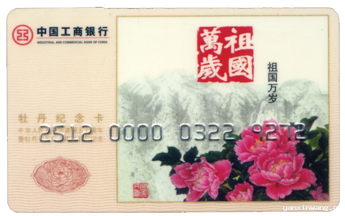 品种:银行卡-银行卡属性:工商银行,90-99年,借记卡,全国通用,其他品牌,套卡简介:工行牡丹卡——祖国万岁,国庆五十周年暨牡丹卡发卡十周年特别发行。