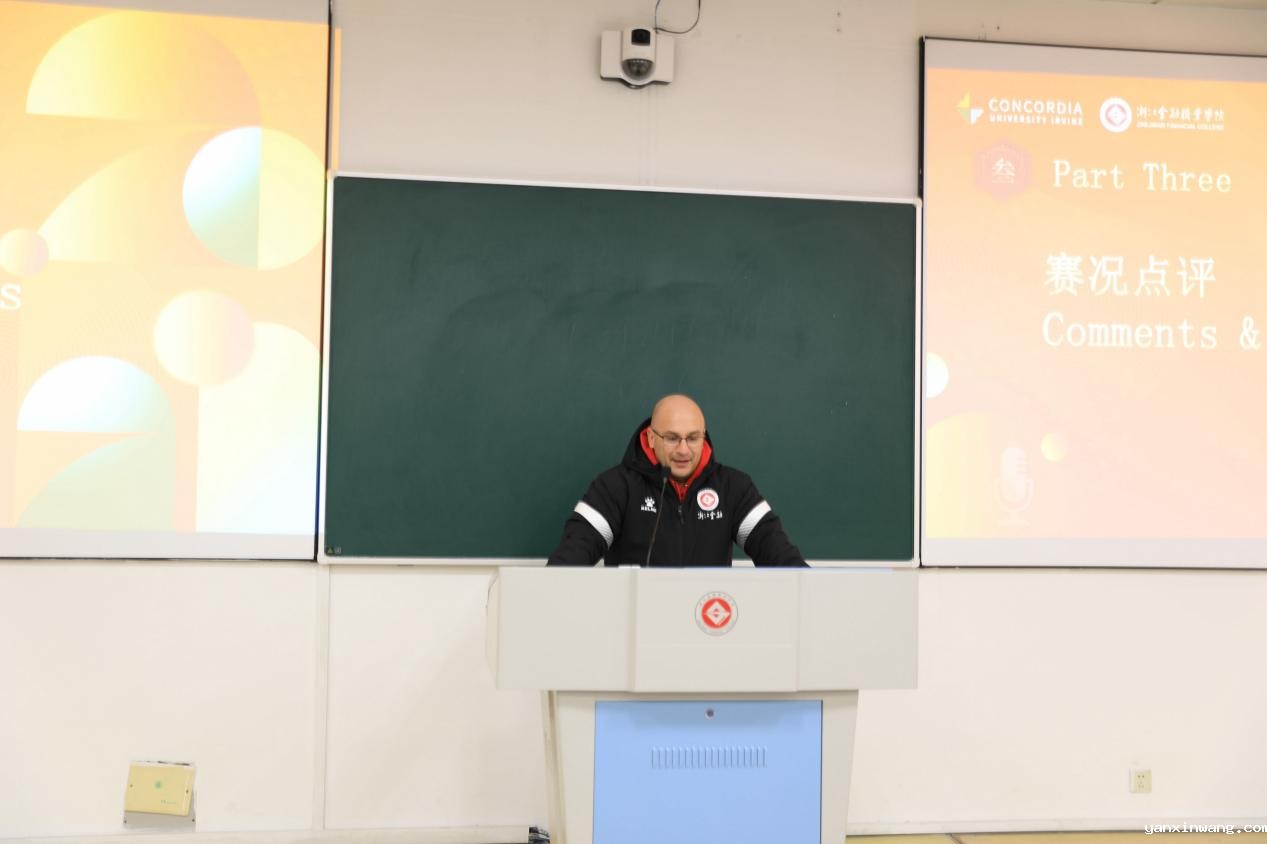 所有展示结束之后,外教Dimitar VLadlkov老师点评了学生们在比赛中的精彩表现,对学生们丰富的舞台表现能力和令人惊喜的英语口语能力予以了肯定,并提出自己的希望:希望学生们在今后的沟通交流中,勇于展现自己,表达自己。